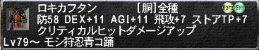 防26 命中+6 攻+6 回避-12 ヘイスト+4% ストアTP+4 Lv79~