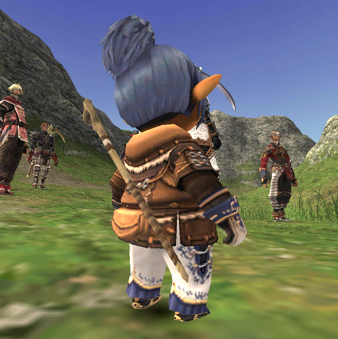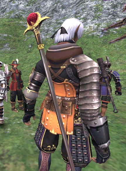 いつもナシュモ集合のエインなわけですが、何やら珍しい武器背負ったミスラが!!